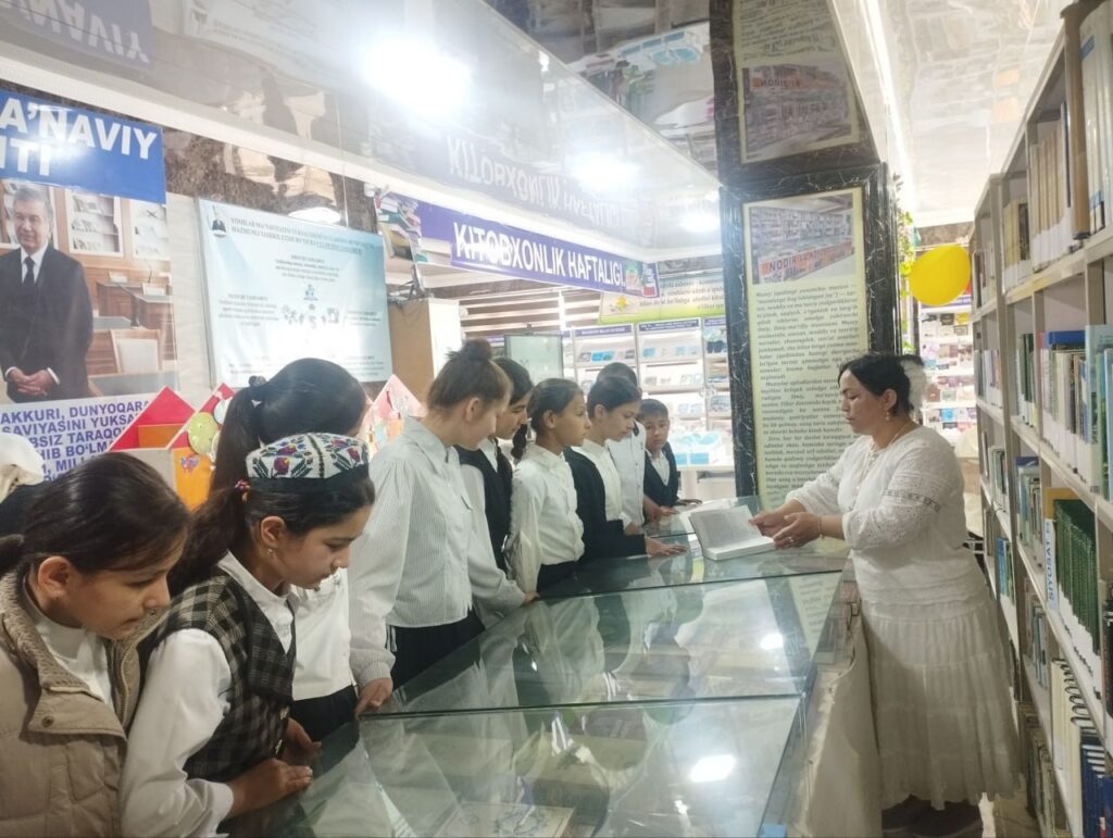 Axborot-kutubxona markazi mutaxassisi N.Muqimova o‘quvchilarga kutubxonadan foydalanish qoidalari, nodir va noyob adabiyotlar muzeyi bilan tanishtirdi.